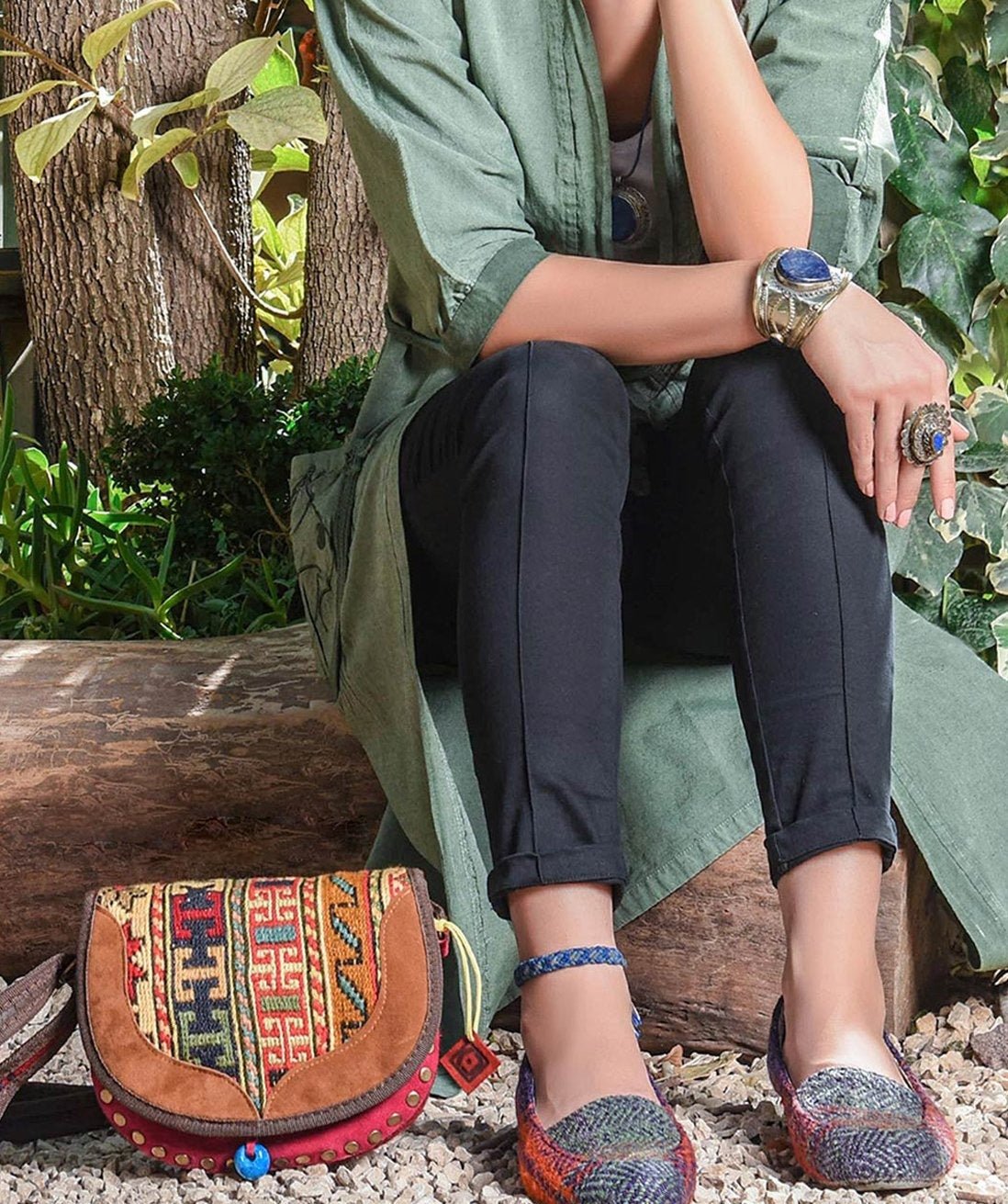 This colorful half-moon handmade kilim/Jajim bag is made from hand-spun wool and yarns which are naturally dyed by leave and fruits. It is completed by interior lined with cotton fabric and durable leather where front side made by kilim and backside made by jajim. Someone who is looking for something special, something oriental or simply a beautiful carpet, is best served with this. VEGA is a unique handmade bag that has all the classic features and is made one of a kind only for you as the pattern is not used in any other bag.